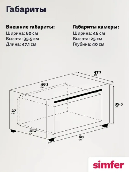 | Размеры (ШxГxВ) | 60 х 47.1 х 35.5 см |