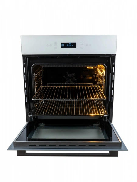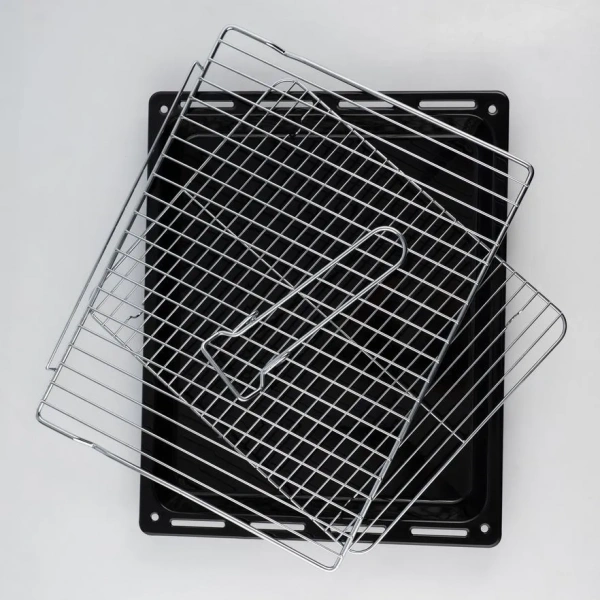 Решетка гриль с функцией STOP; глубокий противень+решетка гриль; съемные телескопические направляющие полновыкатные; прихват для противня и решетка гриль. Духовой шкаф с вилкой.