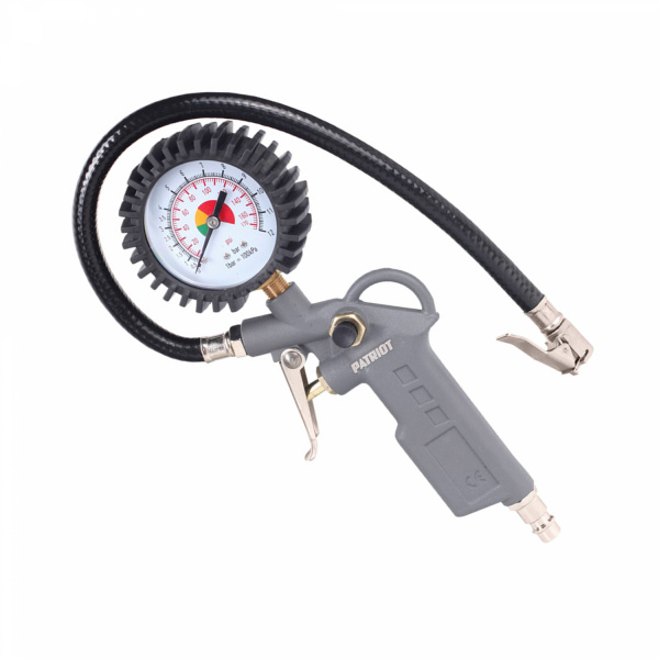 Пистолет для накачки шин с большим манометром - для точного контроля за давлением внутри автомобильных шин. Корпус, изготовленный из металла, обеспечивает надежную защиту от ударов и падений.