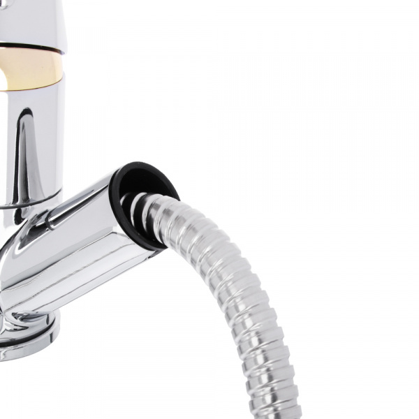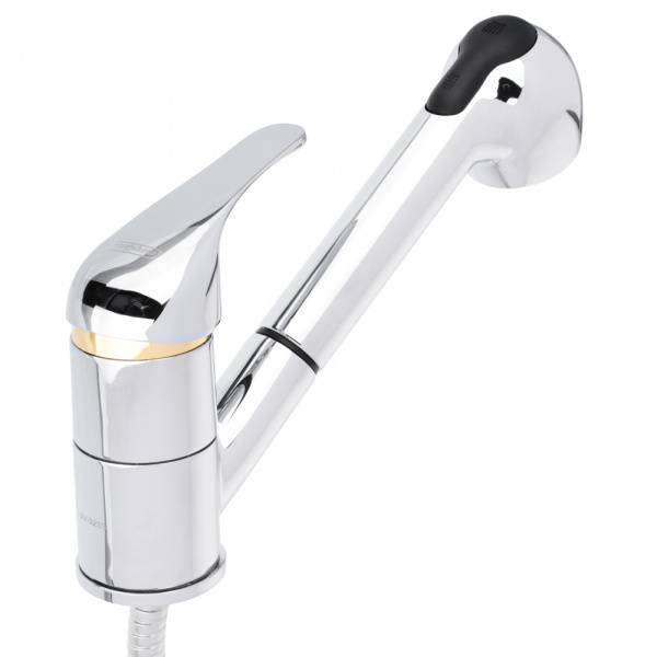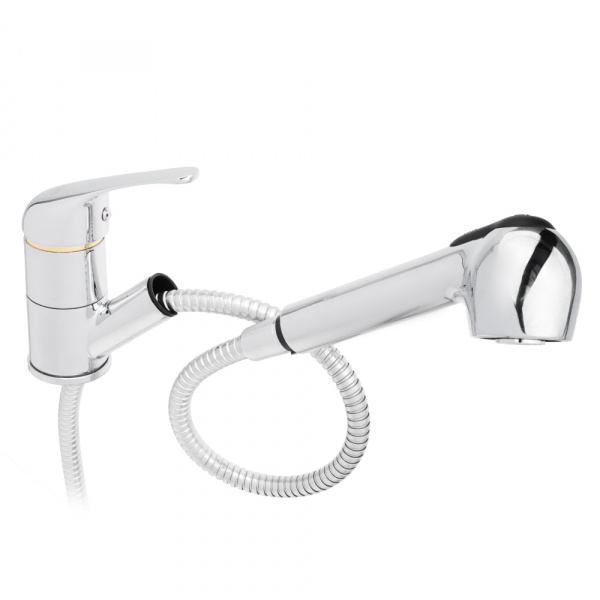 Смеситель для кухни СоюзКран, выдвижной излив, керамический картридж 40 мм, хром, цинк SK01-E119 567-054 стильного дизайна.