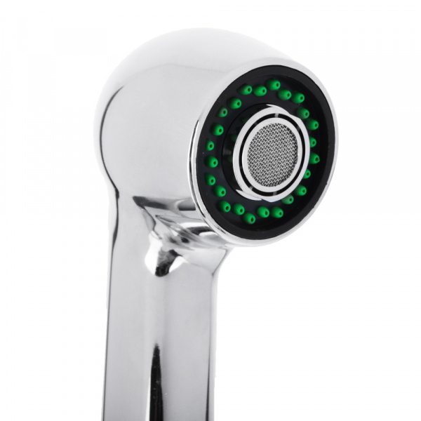Однорычажный смеситель для кухни (567-054) позволяет менять интенсивность потока воды и ее температуру легким касанием одной руки. Изделие сделано из цинкового сплава и покрыто хромом, поэтому обладает повышенной устойчивостью к ржавчине и известняковому налету.
