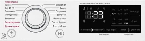 | Программы | антиаллергенная; бесшумная; деликатные ткани; детские вещи; дополнительное полоскание; интенсивная; одеяла; повседневная; подушки; предварительная стирка; смешанные ткани; спортивная одежда; хлопок; шерсть; быстро 14 |