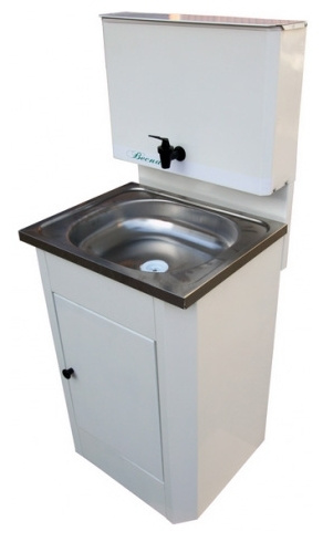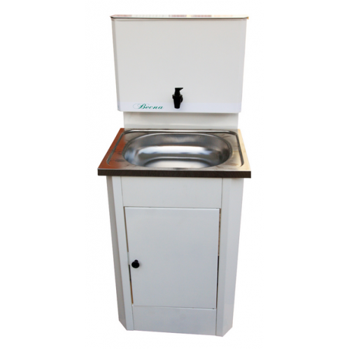 Умывальник "Весна" с ЭВН, мойка нержавеющая, состоит из:тумбы-стойки, раковины, наливного бачка из пластика с водонагревателем.