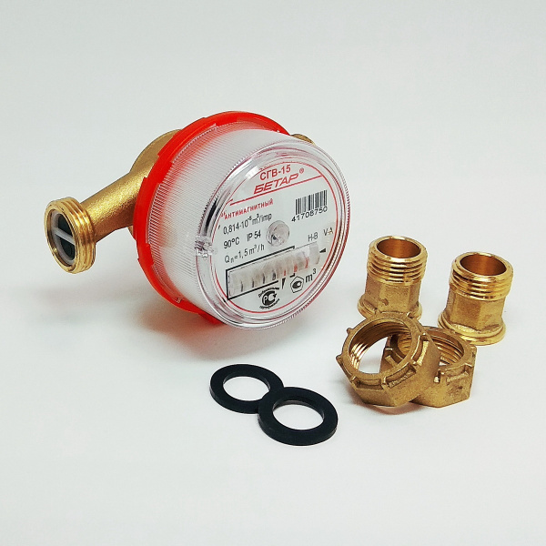 Счетчик воды универсальный (для холодной и горячей воды) Бетар СГВ-15 антимагнитный с монтажным комплектом (обратный клапан).