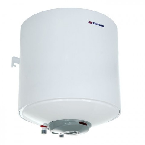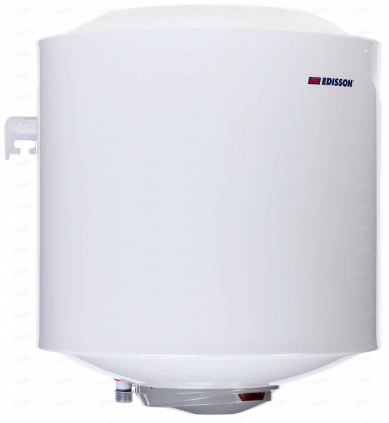Электрический водонагреватель Edisson ER 50V – это стандартная модель накопительного типа с гидравлическим управлением. Такой способ работы подразумевает предварительное заполнение бака объемом 50 л холодной водой, после чего и начинается нагрев. Корпус устройства выполнен из эмалированной стали, а продлить срок службы аппарата помогают функции ограничения температуры нагрева и наличие обратного клапана.