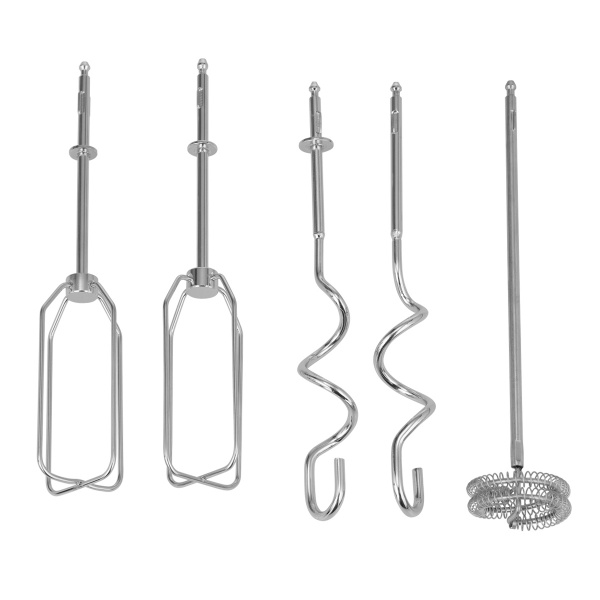 В комплект также входят насадки для взбивания и замешивания теста, чоппер для шинковки и измельчения объемом 650 мл, насадка для приготовления пюре, капучинатор для взбивания молока, кофемолка и мерный стакан объемом 800 мл.