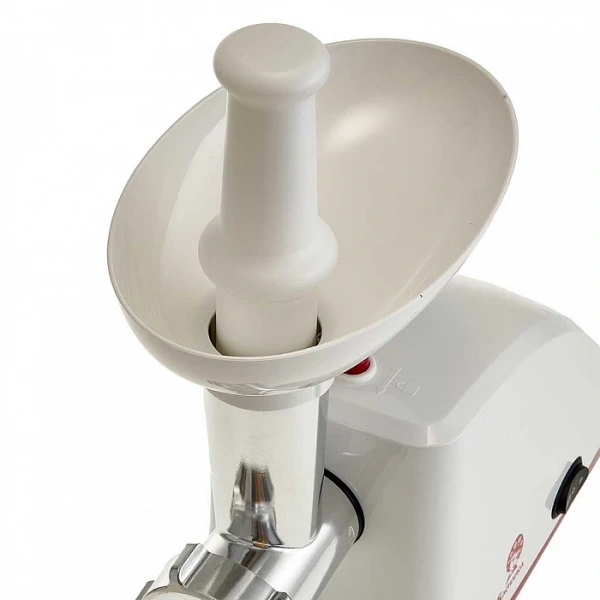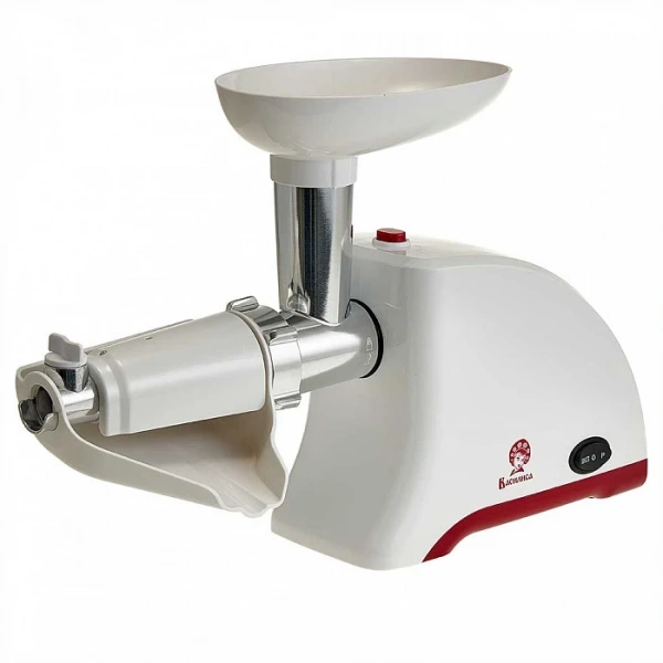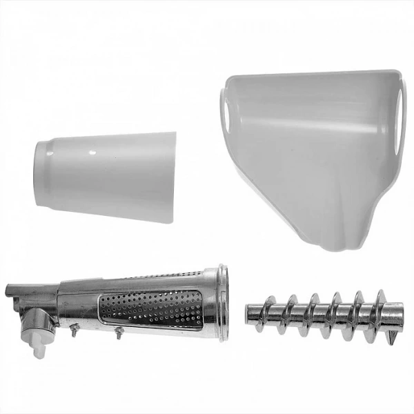 | Комплектация | документация, загрузочный лоток, насадка-соковыжималка, насадка для кеббе, насадка для колбасы, нож, перфорированный диск крупный, перфорированный диск средний, толкатель, шнек |