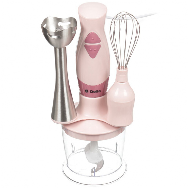 В модели Delta DL-7012D реализовано 2 скоростных режима, для переключения которых предусмотрены соответствующие кнопки. Погружная часть прибора выполнена из нержавеющей стали – материала, не провоцирующего выделение вредных веществ во время контакта с другими продуктами. Этот домашний помощник носит универсальный характер, поскольку способен как измельчить, так и взбить до однородной консистенции различные ингредиенты. Ножи из металла не утрачивают свои режущие свойства на протяжении всего срока эксплуатации.
