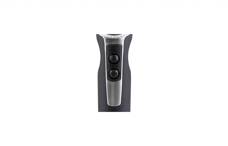 Управление простое и понятное, верхняя кнопка для включения, нижняя — режим турбо. Скорость плавно настраивается регулятором сверху, вы легко подберёте нужную непосредственно во время приготовления.