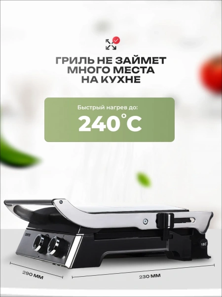 Представляем вашему вниманию уникальный контактный гриль CT-1470 мощностью 2000 Вт, который является идеальным помощником на кухне и поможет вам в мгновение ока приготовить сырники, стейки, бургеры и многие другие блюда. Конечно, каждая хозяйка ценит свое время и не хочет тратить его на нудную готовку, поэтому этот гриль оснащен новейшими технологиями, которые позволяют быстро и без усилий приготовить все ваши любимые блюда. Благодаря мощности 2000 Вт, вы сможете получить идеально приготовленное блюдо быстро и легко! Данный гриль оснащен антипригарным покрытием пластин, что значительно упрощает процесс уборки. А благодаря наличию четырех сменных пластин и поддона для сбора масла, вы можете использовать этот гриль для приготовления различных блюд и не беспокоиться о чистоте прибора. Корпус гриля выполнен из нержавеющей стали и пластика, что обеспечивает надежную и долговечную работу устройства. Особенно стоит отметить наличие LED-индикаторов работы, благодаря которым вы всегда будете знать, когда устройство включено. А еще приятным бонусом является ненагревающийся корпус, который защитит ваши руки от возможных ожогов. Кроме того, контактный гриль CT-1470 имеет гарантию в течение одного года, что говорит о надежности данного устройства и обеспечивает вам полный комфорт при его использовании. Не терпите медленную готовку и устаревшие устройства! Получайте только лучшее и приобретайте контактный гриль CT-1470, ведь он является идеальным помощником каждой хозяйки и поможет сэкономить не только ваше время, но и ваше настроение. Закажите его уже сегодня и получайте только настоящее удовольствие от приготовления ваших любимых блюд!
