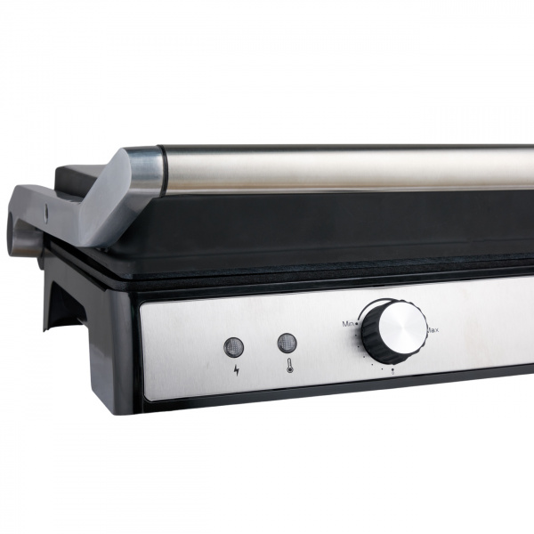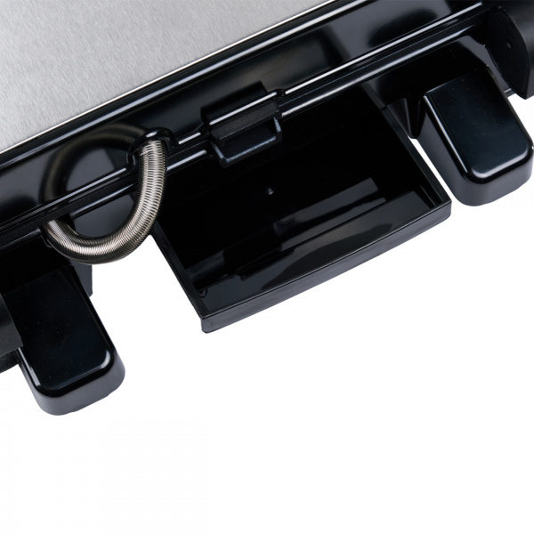 Теплоизолированная ручка обеспечивает безопасность во время приготовления пищи. Управление удобное и простое позволяет выбрать необходимую температуру. Индикатор показывает, когда панели нагрелись и готовы к работе. Антипригарное покрытие защищает от пригорания пищи и легко очищается. Для сбора жира, которое выделяет мясо при готовке, предусмотрен съёмный поддон, который удобно мыть.