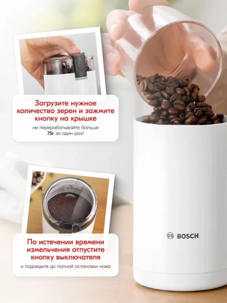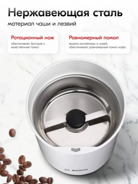 Кофемолка электрическая BoschСистема помола: ротационные ножи Мощность: 180 Вт