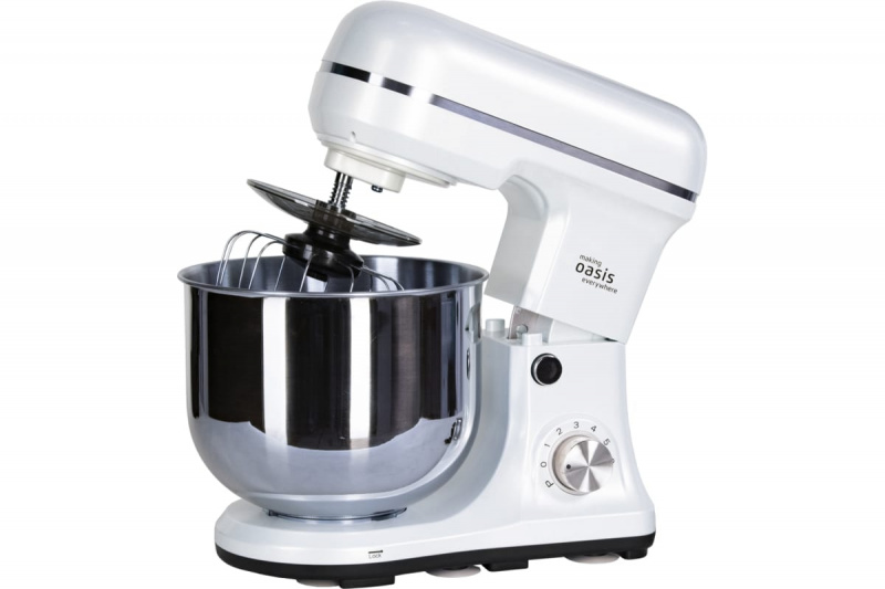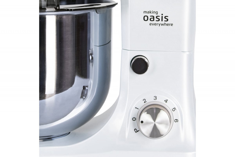 Планетарный миксер “making Oasis everywhere” MP-120W - это мощный и многофункциональный кухонный инструмент, используемый для смешивания, взбалтывания и замешивания разнообразных ингредиентов. Прибор имеет планетарную систему смешивания: насадка вращается по оси и одновременно движется по окружности чаши, гарантируя идеальное перемешивание без комочков и равномерную текстуру.