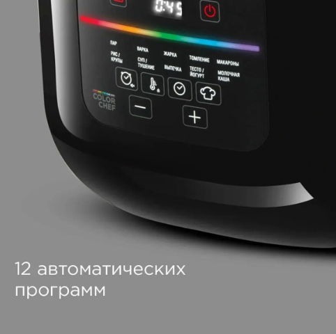 Мультиварка оснащена теми программами, которые используются в домашней кухне чаще всего: для молочных каш, риса, круп и макарон, для супа и тушения, для приготовления на пару, варки, жарки и томления, приготовления йогурта и теста. И, конечно, МАСТЕРШЕФ ЛАЙТ — программа ручной настройки времени и температуры. Блюда на завтрак, обед и ужин, перекус ребенку в школу, блюда для крох от 5 месяцев — с этой мультиваркой готовят все.