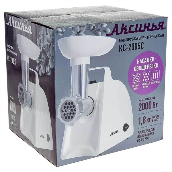 Электромясорубка АКСИНЬЯ КС-2005С, белый, 2000 Вт.