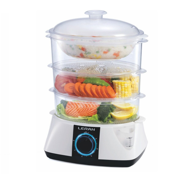Одним из самых полезных для здоровья способов приготовления пищи издавна считается готовка на пару. Специальные кухонные аппараты — пароварки созданы именно для этого. Одна из лучших — Пароварка LERAN FS-355. Корпус из прочного пластика выполнен в бело-черном цветовом решении. Прозрачные емкости, расположенные в три яруса и оригинальная форма, напоминающая пагоду, сделают пароварку украшением кухни любого интерьера.