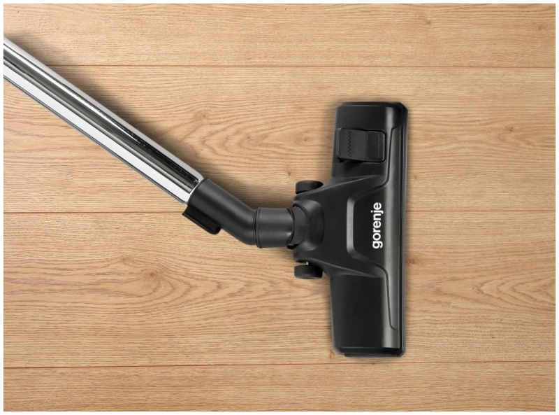 У Gorenje VC1701GACWCY очень продуманная эргономика: большие кнопки включения и намотки шнура (можно нажимать ногой, не наклоняясь), удобная ручка для переноски с прорезиненной внутренней частью, исключающей скольжение и придающей комфорт, мягкие бамперы, исключающие повреждение мебели и самого прибора во время уборки. Радиус действия 7 м – даже в очень просторной комнате будет достаточно одной точки подключения. Вертикальная парковка – пылесос готов к работе в любую минуту. В комплекте двухрежимная насадка для пола и небольшая щетка для щелей и декоративных элементов.