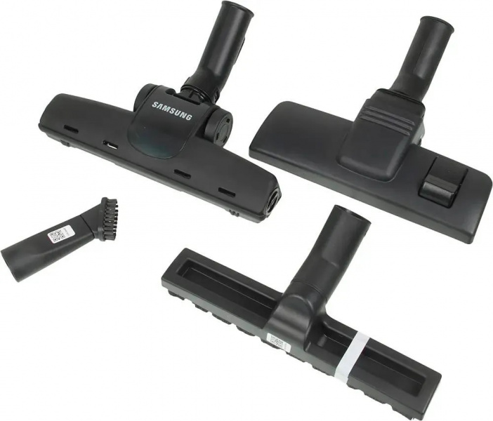 Samsung SC18M21D0VG не доставляет дискомфорта, поскольку уровень шума прибора составляет 87 дБ. Благодаря автоматическому сматыванию шнура в специальный отсек, что способствует удобству. Для эффективности очистки поверхности используется насадка для пола и ковров, а для мебели имеется турбощетка. Для регулирования мощности предусмотрен специальный регулятор на корпусе, поэтому пользователь может не нагибаться для переключения мощности.