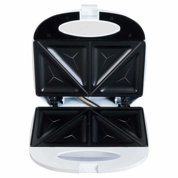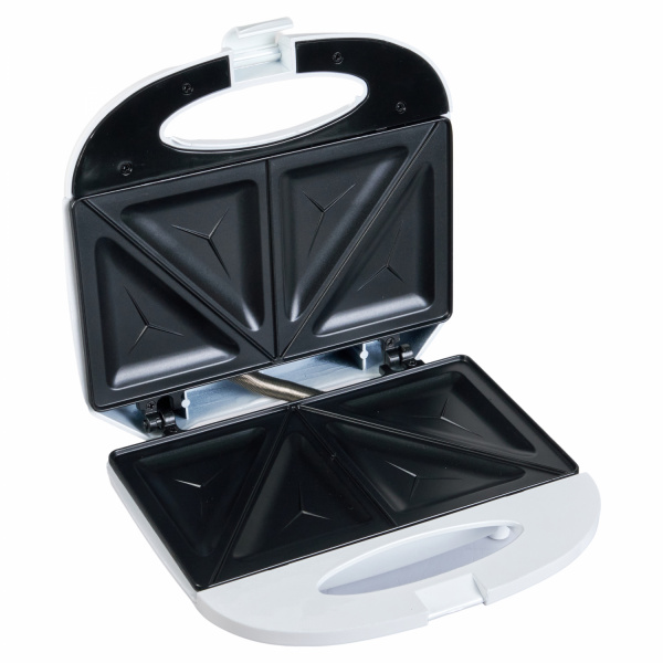 Прибор рассчитан на приготовление четырёх порций одновременно, что делает его идеальным выбором для семьи или небольшой компании. Благодаря своим компактным размерам, сэндвичница не занимает много места и легко помещается в сумку, благодаря чему её легко брать с собой в поездку. Фиксатор предотвращает случайное открытие во время работы, а также позволяет надёжно склеить половинки сэндвича между собой.