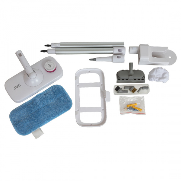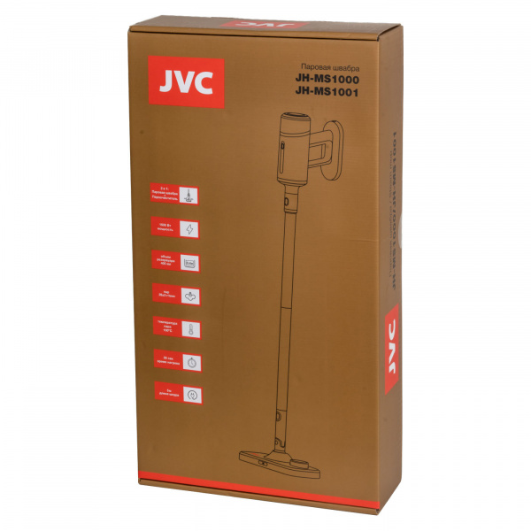 Паровая швабра для дома JVC JH-MS1000 2 в 1 мощностью 1500 Вт и 6 насадками - это современный, многофункциональный прибор, сочетающий в себе дезинфектор, стеклоочиститель, отпариватель изделий из текстиля, штор, драпировок, скатертей, очиститель для плит и пароочиститель.