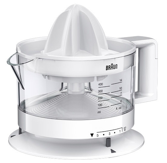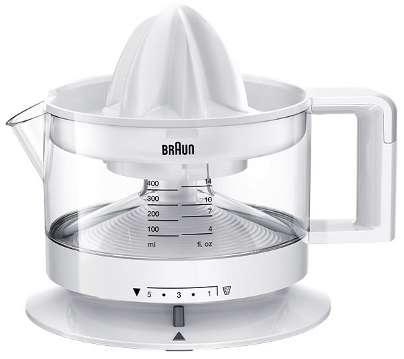 Небольшая аккуратная соковыжималка BraunCJ3000 предназначена для изготовления сока из цитрусовых. Емкости для сока в 350 мл достаточно, чтобы приготовить витаминный утренний коктейль небольшой семье. Функция регулирования количества мякоти позволяет изготовить чистый сок или пюре. Сквозь прозрачные стенки пластиковой емкости видно количество выжатого сока, а для более точного определения на стенах кувшина имеются черточки.