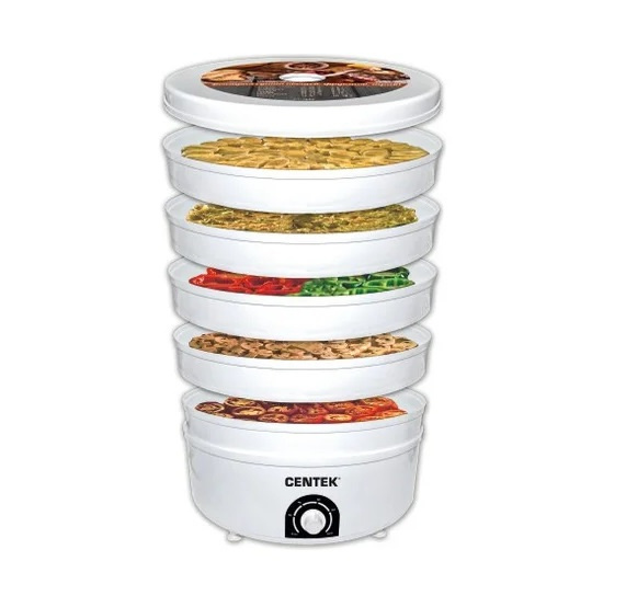 Сушилка для овощей Centek CT-1660 проста в использовании. Оснащена пятью поддонами для высушивания овощей, фруктов, грибов и трав. Номинальная загрузка одного поддона: 4 кг.