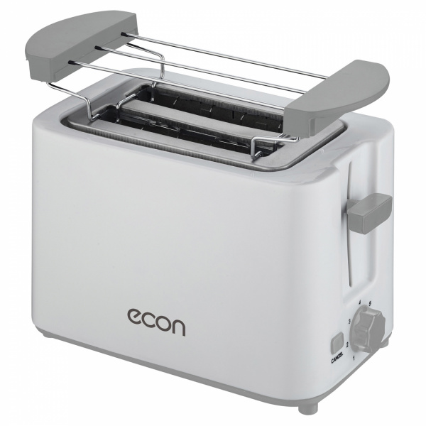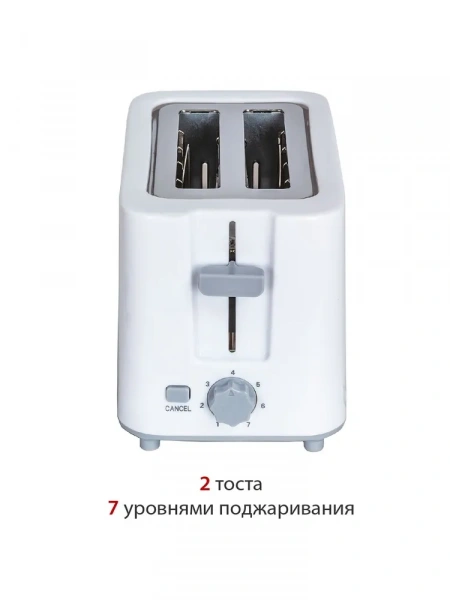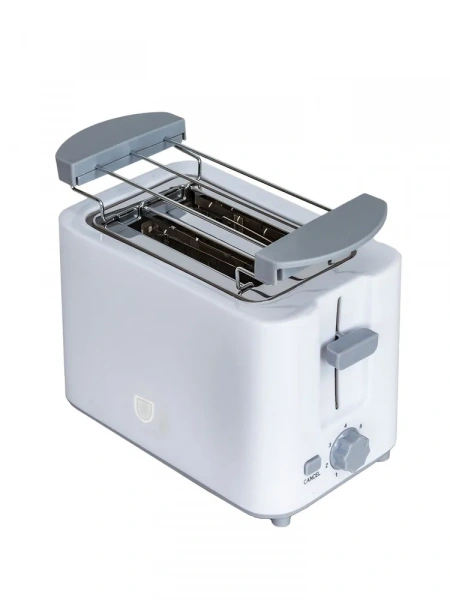 Термоизолированный корпус нашего тостера выполнен в белом цвете. Он прост в управлении и будет отлично смотреться как в классическом, так и в современном интерьере кухни. В комплекте с тостером поставляется металлическая подставка для подогрева бутербродов, булочек и других продуктов.