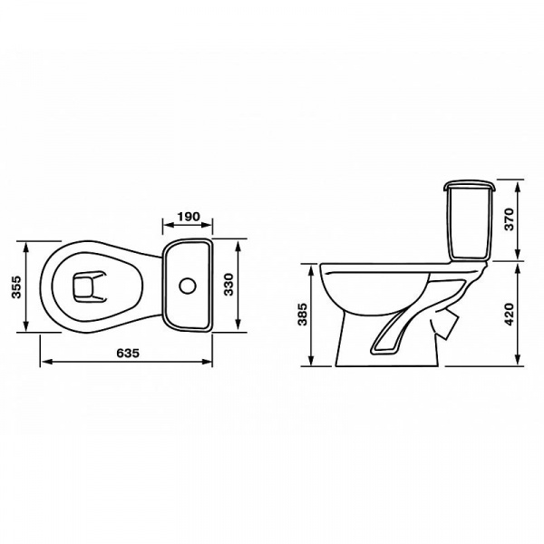 - Чаша унитаза компакта имеет форму, позволяющую при смыве воды, полностью омывать внутреннюю поверхность, также благодаря форме, реализована система "антивсплеск".