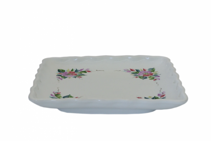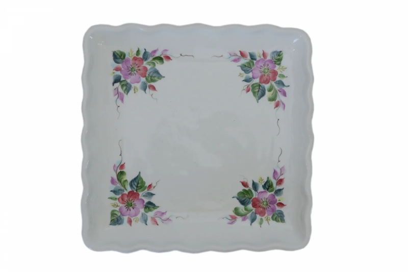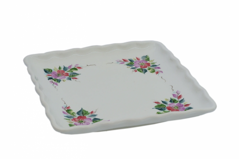 Предлагаем вашему вниманию нежное и изящное квадратное блюдо из коллекции Шиповник. Изделие декорировано подглазурной цветочной росписью, края блюда украшает милая оборка. Ручная работа.