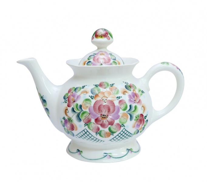 Небольшой заварочный чайник известной коллекции "Русский сувенир" - хороший вариант для чаепития на 1-2 персоны. Ценители свежезаваренного чая непременно оценят этот вариант. Яркая и насыщенная подглазурная ручная роспись с изображением цветочков - гармонично украшает данное изделие. Чайник подается отдельно или в наборе с доливным чайником большего объема.