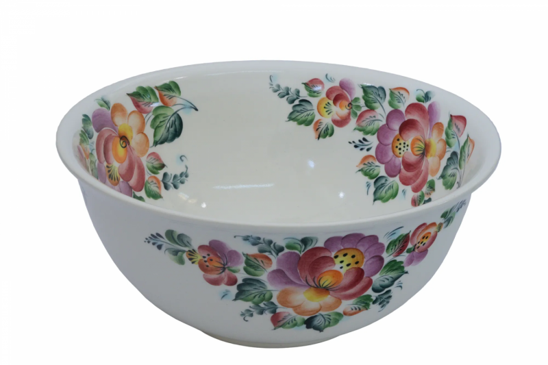 Предлагаем вашему вниманию по-летнему яркий и нарядный салатник из известной коллекции Край Донской. Благодаря внушительному размеру, изделие идеально подойдет для подачи салатов к праздничному столу для большой компании. А его яркий и изящный внешний вид обязательно привлечет к себе внимание гостей. Подглазурная мазковая цветочная роспись. Ручная работа.