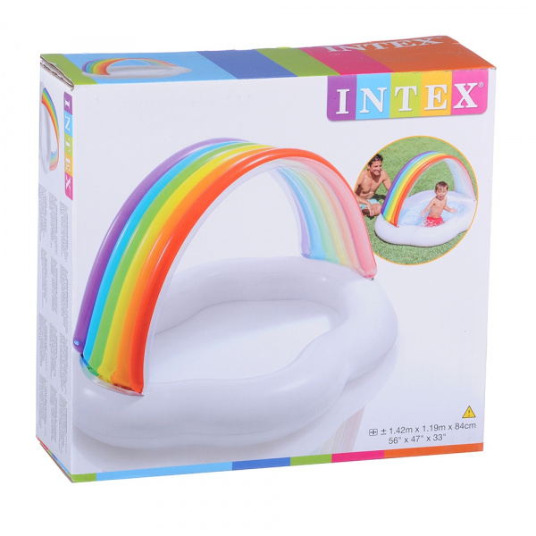 Если в летнее время у вас есть возможность много времени проводить с ребенком на свежем воздухе, то вам просто необходим этот удобный бассейн из плотного винила. Изделие поможет крохе освежиться в жаркий денек, а красочная надувная радуга защитит его от перегрева и прямых солнечных лучей.