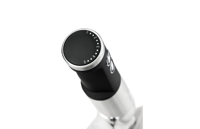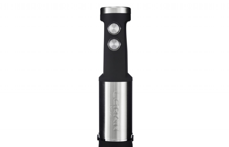 Удобный корпус блендера выполнен из металла и пластика с покрытием Soft Touch, благодаря чему он не скользит в руке. Современный дизайн дополнен синей LED подсветкой. Основная насадка из нержавеющей стали и 6-лепестковое лезвие из сплава титана и алюминия обеспечивают долговечность и возможность работы с горячими продуктами. 5 скоростей с плавной регулировкой и кнопка турбо помогут подобрать нужный режим для самых сложных блюд.