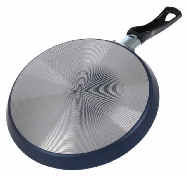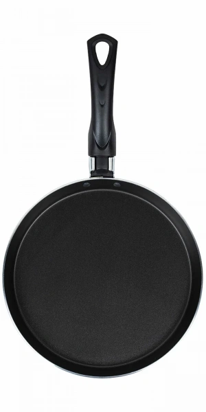 Прочный алюминиевый корпус из штампованного металла быстро нагревается и равномерно обжаривает блинчики без пригорания и прилипания. Низкие бортики максимально облегчают процесс переворачивания: тесто получится ровным и аккуратным.