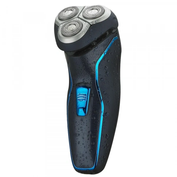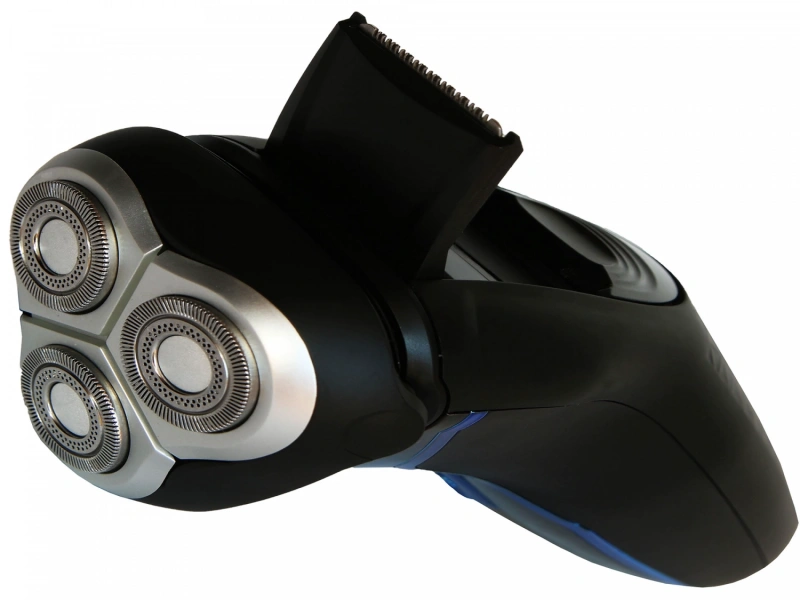 Корпус модели сделан из ударопрочного пластика черного цвета с покрытием SOFT TOUCH для удобного удерживания в руке. Глянцевые чёрные и синие вставки добавляют изделию стиля и солидности. Механизм бритвенного блока двигается в двух плоскостях, а три головки бритвенного блока плавающие, для повторения контуров лица, комфортного бритья. Состоит из трех плавающих самозатачивающихся бритвенных головок. Материал головок и лезвий нержавеющая сталь. С обратной стороны расположен откидной триммер для окантовки затылка, подравнивания висков и бороды. На корпусе бритвы расположена кнопка синего цвета включения/выключения .