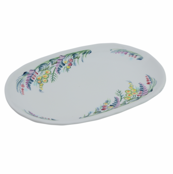 Для красивой и удобной подачи различных блюд на завтрак рекомендуем присмотреться к этой красивой бутерброднице. Изделие изящной формы декорировано нежной цветочной росписью с изображением полевых цветов. Бутербродница идеально подойдет для подачи бутербродов, сырников, блинчиков, круассанов и других десертов.