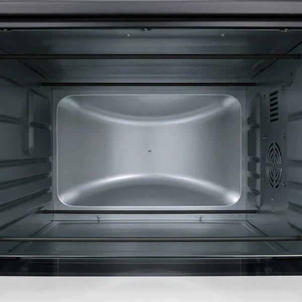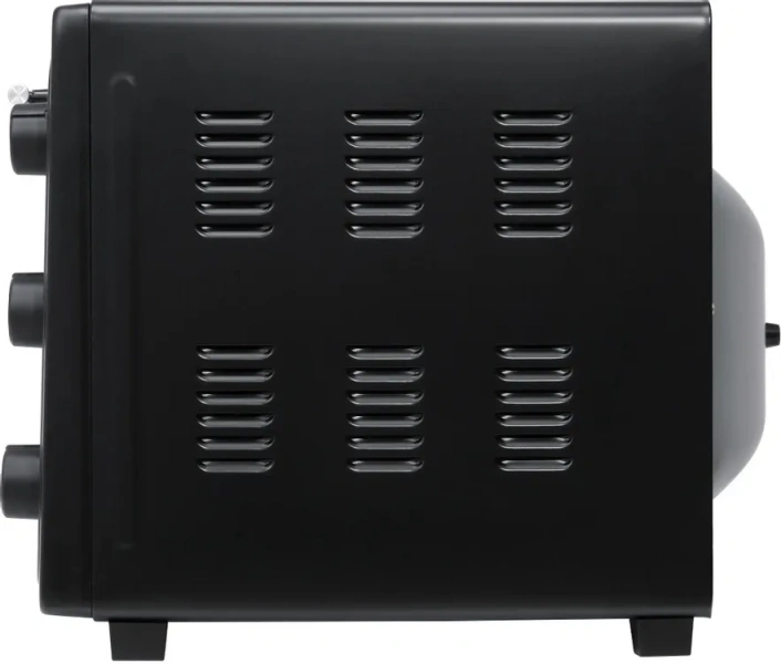 Интуитивно понятное механическое управление позволяет быстро настроить температуру, режим и время готовки. Устройство имеет пять режимов работы: нижний нагрев, верхний нагрев, нижний + верхний нагрев, верхний + конвекция, нижний + верхний + конвекция. Температура регулируется в диапазоне от 100 до 250°С. Конвекция обеспечивает равномерное распределение тепла, благодаря чему ингредиенты пропекаются равномерно. Благодаря таймеру можно установить время, необходимое для приготовления блюда. О работе мини-печи сигнализирует световой индикатор.