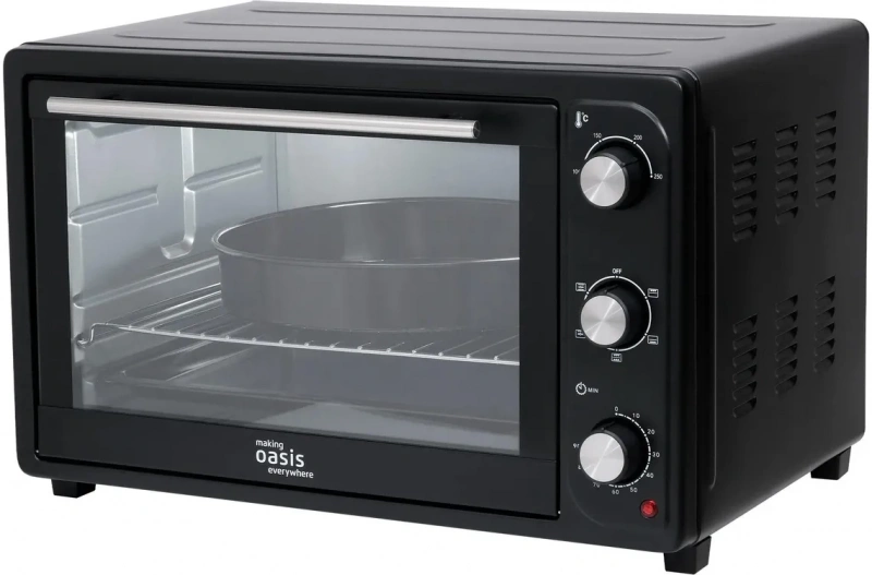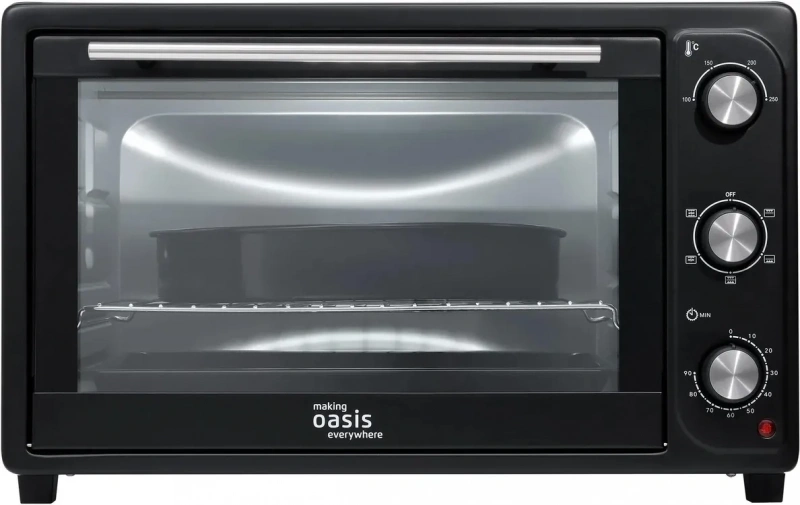 Двойное термостойкое стекло не допускает теплопотерь внутри камеры и даёт возможность контролировать ход приготовления. Внутренняя камера сделана из оцинкованной стали, которая устойчива к коррозии и перепаду температур. Отличным подспорьем при готовке послужат: противень, решётка и круглый поднос для пиццы, идущие в комплекте. Мини-печь making Oasis everywhere – отличный выбор для любителей домашней еды.