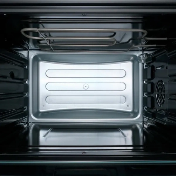 Двойное термостойкое стекло не допускает теплопотерь внутри камеры и даёт возможность контролировать ход приготовления. Внутренняя камера сделана из нержавеющей стали, которая устойчива к коррозии, перепаду температур и механическим повреждениям. Отличным подспорьем при готовке послужат: противень, решётка и круглый поднос для пиццы, идущие в комплекте. Противоскользящие ножки обеспечивают устойчивость на гладкой поверхности.