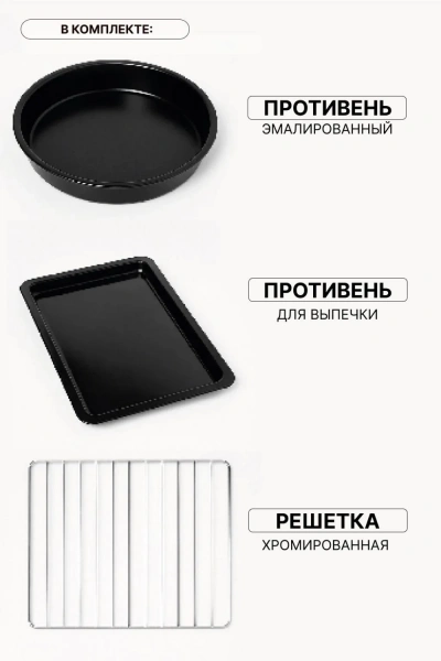 | Комплектация | круглый противень, решетка |