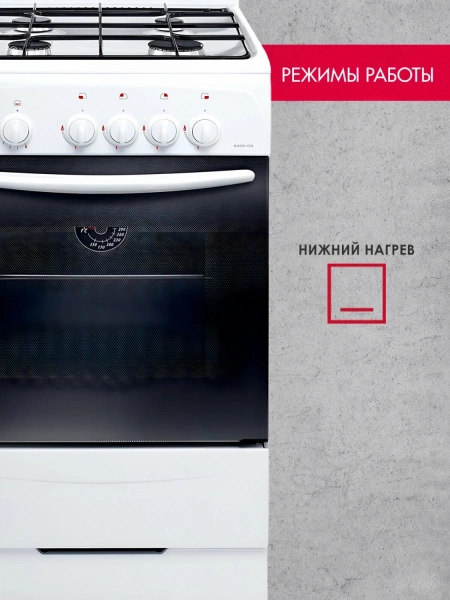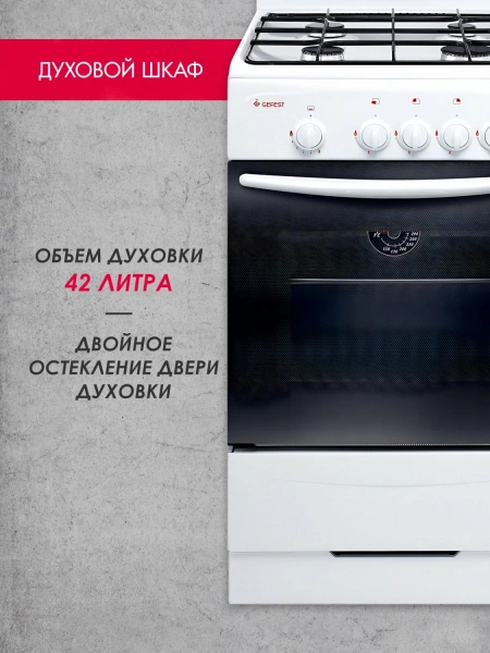 Модель выполнена в классическом белом цвете и оснащена четырьмя конфорками с литыми горелками, установленными на поверхности из прочной эмали. Плита укомплектована щитком, который защищает заднюю зону плиты от загрязнений. Система газ-контроля, установленная в духовке, обеспечивает безопасность при её использовании. Розжиг горелок и духового шкафа осуществляется вручную с помощью спичек или отдельного устройства. Духовой шкаф объёмом 42 литра работает на основе нижнего нагрева. Контроль температуры осуществляется визуально — с помощью термоуказателя, который отображает текущий уровень нагрева камеры. Очистка внутренней поверхности облегчена благодаря технологии гидролиза — загрязнения размягчаются паром без применения химических средств. Дверца духовки имеет два стекла для лучшего удержания тепла. Управление плитой механическое. В комплекте присутствуют противень, жаровня и сменные сопла для работы на сжиженном газе. Хранение кухонных принадлежностей организовано под духовкой — там расположена откидная крышка. GEFEST 3200-08 — это простая и функциональная техника для тех, кто ценит практичность и проверенные решения. Модель подходит для повседневного использования в условиях ограниченного бюджета.
