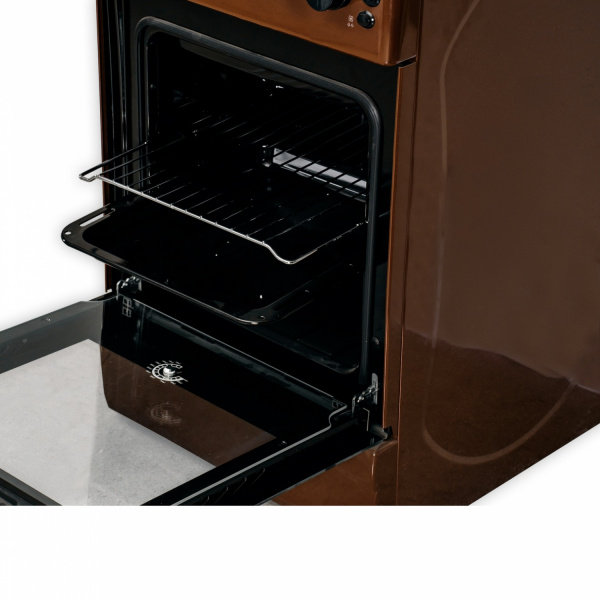 Газовая плита Kraft KF-FSK5403AGBR в темно-коричневом цвете сочетает в себе функциональный дизайн и простоту управления. Данная модель оборудована четырьмя газовыми конфорками фирмы SABAF (Италия) с функцией автоподжига и газовым духовым шкафом объемом 58 литров, оснащенным системой газ-контроля и внутренней подсветкой. Уровень нагрева духовки определяется с помощью термометра на дверце. В комплект входит набор съемных жиклеров для перевода плиты на необходимое газоснабжение.