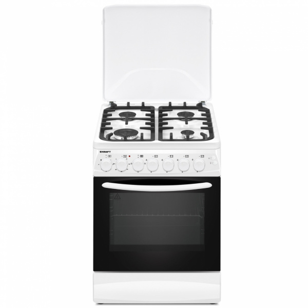 Комбинированная плита Kraft KF-FSK6407AEWI оснащена конфорками фирмы SABAF (Италия). Управление подачей газа осуществляется удобными поворотными переключателями. Автоподжиг функционирует на варочной панели, для его включения достаточно лишь зажать кнопку. Электрическая духовка имеет объем 70 литров. Модель оснащена металлической крышкой с быстросъемным механизмом, поэтому крышку легко снять и помыть. В комплекте противень и решетка.