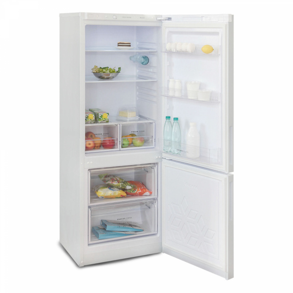 Техника Бирюса 6034 потребляет в год всего 303 кВтч, а при отключении света держит холод до 12 ч. Мощности морозильной камеры хватает для заморозки 5 кг/сутки. При открытии дверцы срабатывает звуковая индикация, которая подскажет о неплотном закрытии. Холодильник оснащен капельной системой разморозки, а очистка морозильника от наледи проводится вручную.
