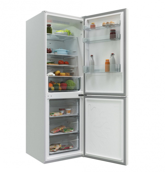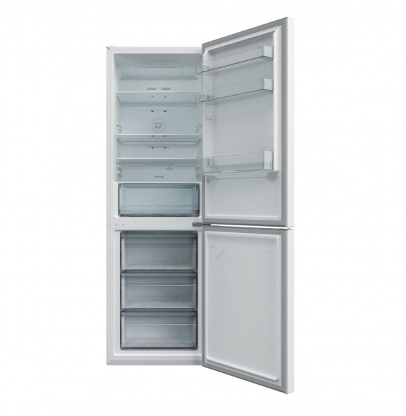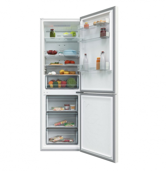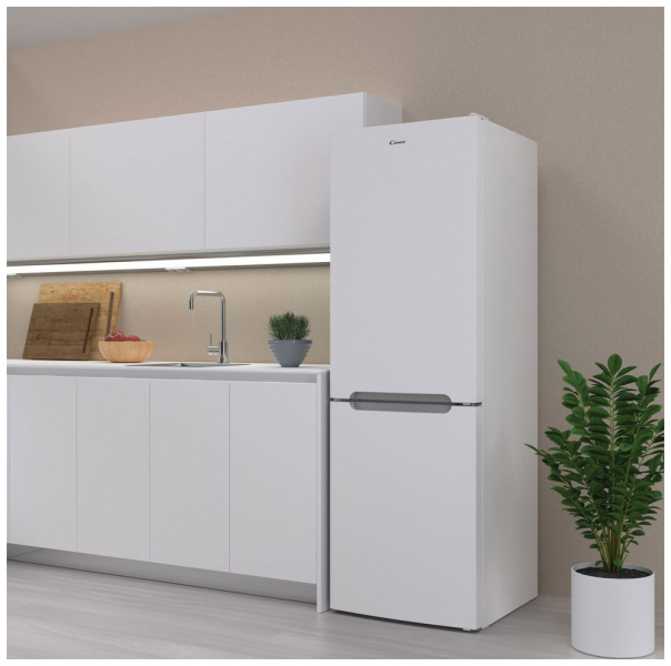 Холодильник полноразмерный с морозильником Candy CCRN 6180W оснащен системой No Frost, которая препятствует образованию наледи и позволяет сэкономить время на уходе. Модель характеризуется низким уровнем шума 40 дБ и относится к классу энергоэффективности А. Дверца перенавешивается с левой или с правой стороны в зависимости от планировки помещения. Для удобного расположения продуктов есть три стеклянные полки высокой прочности. Пользователь может оптимизировать пространство, поменяв высоту подставок. Для яиц, соусов, воды, консервов и других ингредиентов есть несколько «карманов» на двери.