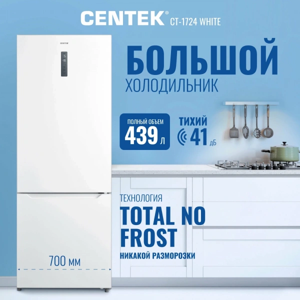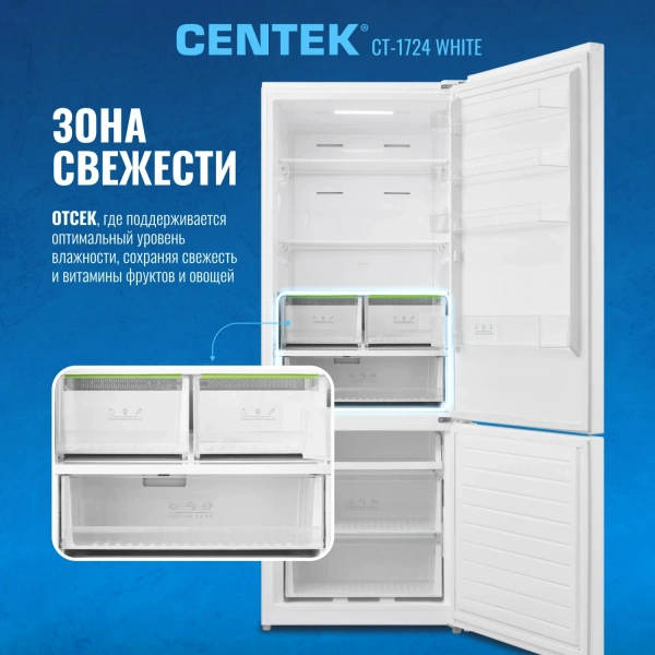 Холодильник Centek CT-1724 NF White total No-Frost - это современное и функциональное решение для хранения продуктов.