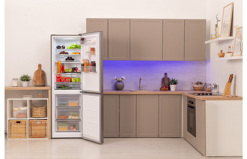 Электронная панель управления позволяет легко контролировать температуру в обоих отделениях, настраивать её раздельно для каждой камеры и изменять режимы работы, не открывая дверцу холодильника. Сенсорное управление и большой дисплей делают процесс настройки быстрым и понятным. Функция блокировки панели предотвратит случайное изменение настроек и нагрев или чрезмерное замораживание продуктов.