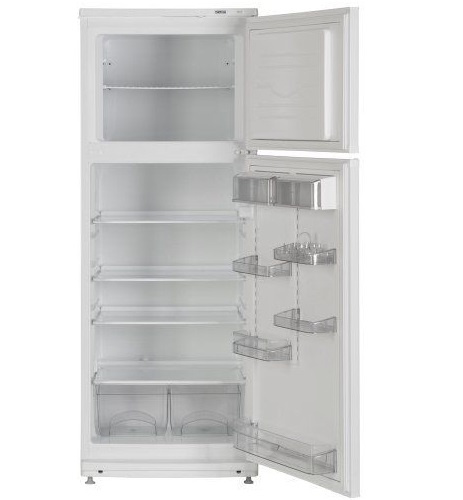 Верхняя морозильная камера, объем которой 70 л и скорость заморозки продуктов до 4.5 кг в сутки при минимальной температуре -18 С, разделена пополам с помощью решетчатой полки. При отключении электроэнергии температура будет неизменной на протяжении суток. Холодильная камера с рабочим объемом в 202 л разделена ударостойкими полками на 4 отсека, которые можно регулировать. Для свежих овощей и фруктов предусмотрена пара выдвижных контейнеров из прочного пластика. На двери расположены отделы для бутылок, яиц и закрывающийся контейнер для молочных продуктов. Атлант МХМ 2835-90 достаточно экономичен, его можно зачислить к классу А. За год беспрерывной работы холодильник потребляет 314 кВт·ч. Если его установить на ровный пол, он будет более бесшумным (41 дБ).