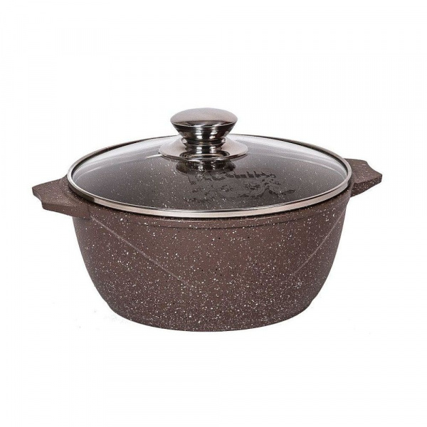 Кастрюля 3 литра Гранит Brown Мечта отлита из высококачественного пищевого алюминия. Обладает быстрым нагревом и равномерным распределением тепла по всей поверхности.Преимуществом кастрюли Мечта с антипригарным покрытием Гранит является то что во время варки к её дну не прилипают крахмальные и мучные изделия: макароны, пельмени, вареники. Достаточно мягкой губки с мыльной водой, чтобы кастрюля снова была готова к использованию.