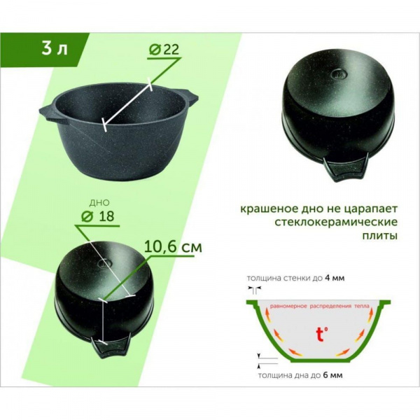• Толщина дна: 5,5-6 мм
